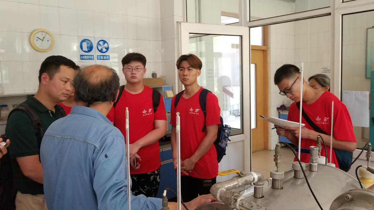 来到实验室之后,黄斌带领调研团观摩实验仪器。黄斌指出,循环水系统作为齐鲁石化的一个用水“大户”,自然少不了对于系统的监控及保护。而调研团参观的这套设备正是用来模拟整个循环水系统,并对整个水循环系统进行监控。黄斌就每一个设备的用途及名称都做了详细的介绍,并现场拿样品为调研团进行演示。在参观过程中,调研团的部分成员就其中不懂的地方对黄主任进行询问,并且黄主任对每位团员的问题进行了详细的讲解。
