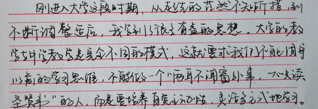 借此机会,学生反思了入学以来自身存在的问题,包括进入大学以后学习方法的欠缺、思想上的懈怠、以及生活上的不适应。