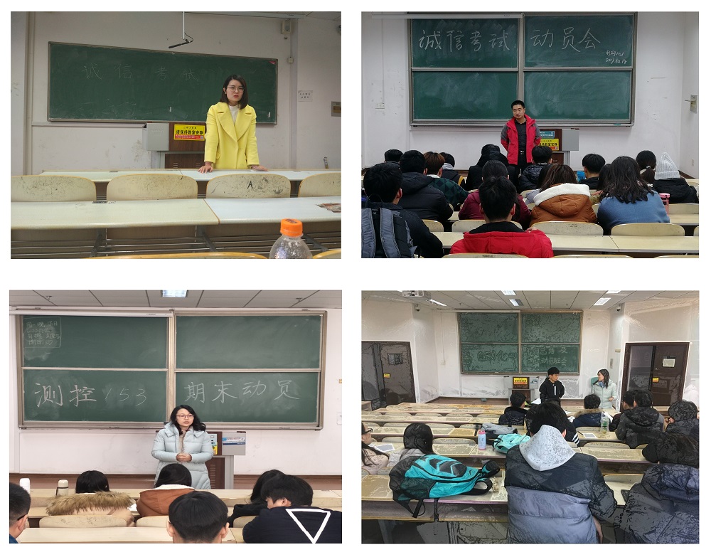 学生纪律处分管理规定的相关条款,强调违规舞弊行为的后果和严重性;自动化157班对大学生活中各种不诚信的现象及后果进行讨论,以此警示同学们诚信做人的重要性。各班级成立学习互助小组进行互帮互助,并将根据期末考试对成效明显的学习小组予以表彰。