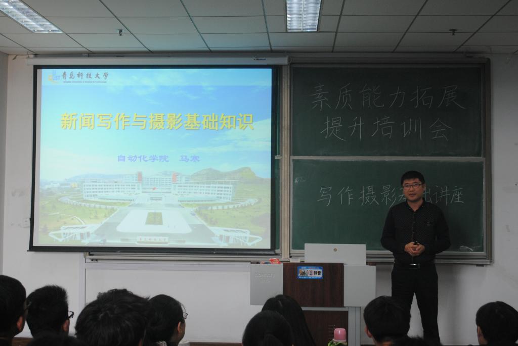 于明德楼212教室开展“高举团旗跟党走,青春建功双一流”学生干部素质能力拓展提升培训会,学院党总支副书记兼副院长马寒为学生会成员和班级主要干部讲授新闻写作及摄影基础知识。