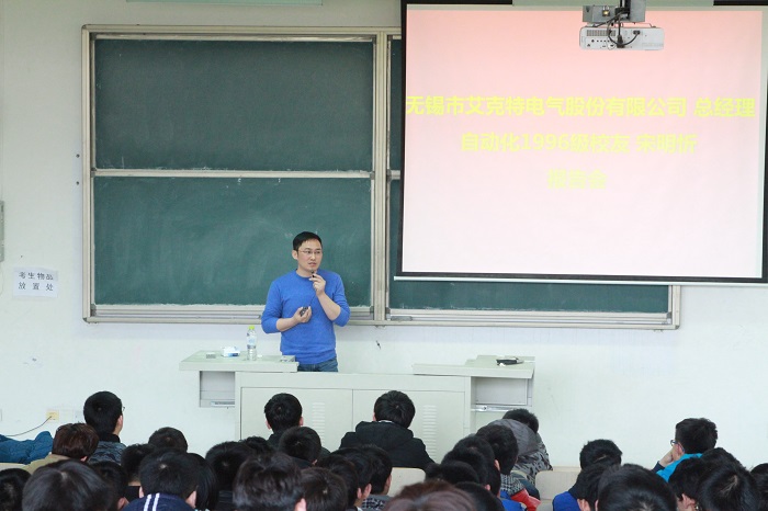 邀请无锡市艾克特电气股份有限公司经理、自动化96级校友宋明忻为自化学子带来了一场精彩的励志报告会;swag直播