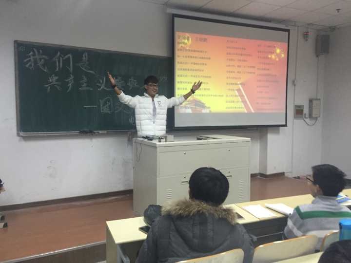 11月28日晚间,在明德楼317,电信152班兴致高昂的同学们早早来到会场准备开始。在主持人满怀激情的开场白下,拉开了活动的序幕。首先进行的是红色诗文朗诵,同学们用洪亮的声音,抑扬顿挫,将党的伟业与祖国的壮丽展现的淋漓尽致。接着,主持人为同学们播放了经典抗日电影《百团大战》,同学们聚精会神,满怀自豪感看完电影,影片中彭德怀将军的足智多谋与义勇善战成为同学们津津乐道的话题。同学们意犹未尽,还在回味影片中激动人心的战争场面时,主持人给每位同学分发一张便贴纸,同学们写下了自己对共产主义的敬仰,也写下作为共产主义接班人的我们,对自己的期望,自己的梦想,在一片欢乐中为本次的活动画上了一个圆满的句号。
