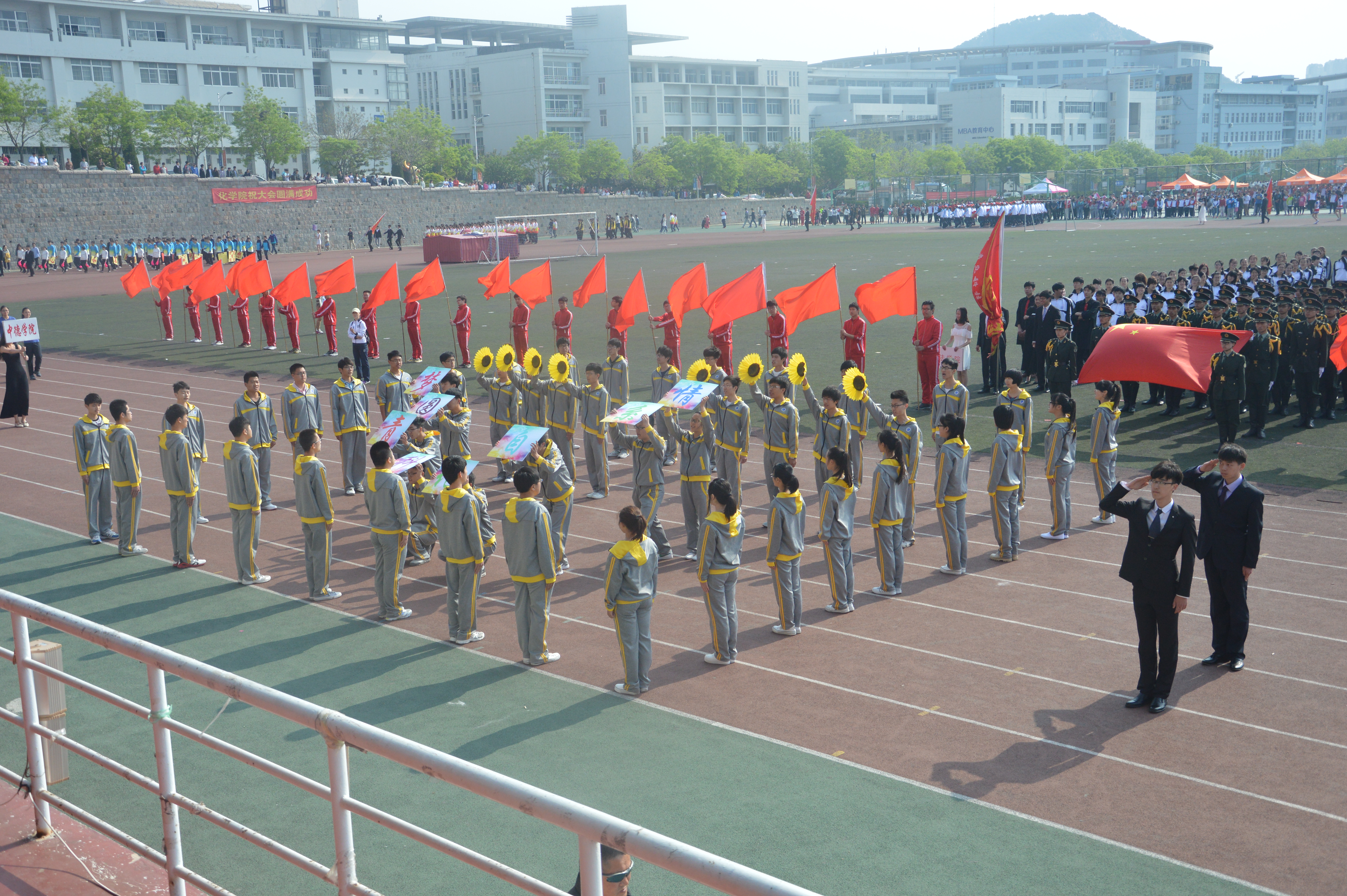 2015年田径运动会于崂山校区田径场上拉开序幕。校领导高青、马连湘、王瑞芳、张元利、李庆领、张淑华、韦殿华出席开、闭幕式。副校长张元利致开幕辞,副校长张淑华致闭幕辞。四方、崂山、高密校区的教师同学均参与其中。