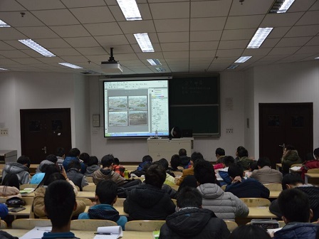 讲解开始,朱淑芳怡根据自身学习Photoshop的经历,向大家说明了兴趣对学好Photoshop重要性。在此之后,朱淑芳还向同学们讲解了为什么要学习Photoshop,怎样学会Photoshop以及Photoshop应用的基本知识等。讲解途中,她通过展示自己曾做的各种海报,以及现场再现制作海报的过程直接生动地向同学们们讲解了使用Photoshop的基本技巧和注意事项。在同学们对基本操作有所了解后,朱淑芳开始一步步地指导同学们如何巧妙地运用Photoshop软件的工具来美化图片和制作海报。朱淑芳也向同学们推荐了许多有助于学习Photoshop的各类网站和软件,鼓励有兴趣的同学勤加学习。她对图层,路径,通道等内容做了深层介绍,让同学们了解到Photoshop是一个功能强大的图像处理软件。并运用Photoshop为同学们做了演示,教会了同学们一些简单的图像处理,极大地提高了同学们对Photoshop的兴趣。教室内座无虚席,同学们听讲认真,还不时做着笔记。