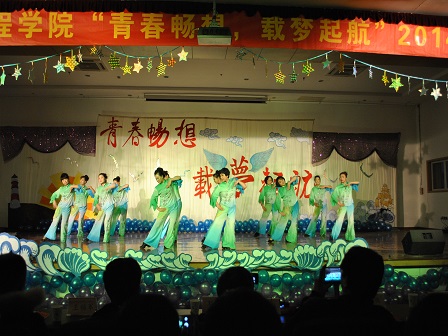 尤为一提的是,由我校12位教职工自编自排的舞蹈《茶香中国》,既为大家带来了柔美的舞姿,又营造出了采茶品茶的惬意场景,让在场的嘉宾和观众一饱眼福。王德玺老师的《有没有那么一首歌》high翻全场,将晚会的气氛再次推向高潮。最后,带着梦想,带着对祖国的祝福,一首美声《祖国正是花季》为本次晚会画上了圆满的句号。