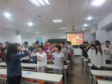 组织所有班团干部在党旗下以青春的名义庄严宣誓,借此,来表达对革命先烈的哀思之情。鲜红的党旗简约而有力地为现场渲染出庄重的气氛。“以我壮志激情,创造崭新未来;以我火红青春,建设锦绣中华”,誓词慷慨激昂,宣誓声铿锵有力,每个人都接受了一次心灵的洗礼。会后,大家分别畅谈了自己的体悟与感受,纷纷表示:广大青年特别是青年学生干部、团干部要主动学习,立足本职,明确使命和责任,把热爱祖国、忠于人民、无私奉献、敢于牺牲的宝贵精神凝聚成奋勇前行的思想基础、汇聚为实现中国梦而奋斗的青春力量。宣誓后,大家合影再次表达了对革命先烈的缅怀。