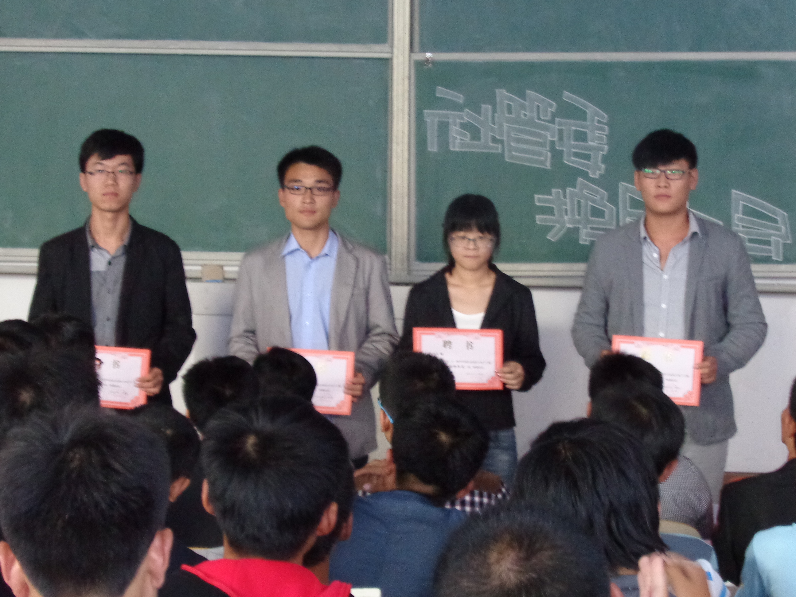 第五届社团管理委员会成立的批复。会议中由老师们为本届主席团颁发聘书。然后,第五届社团管理委员会主席刘开合就本届社团管理委员会的目标及任务作了讲话并为会长代表颁发聘书。最后肖强总书记发表讲话,他从学习,生活,思想,工作等方面对社管委全体成员提出了要求,希望同学们做一个品学兼优,严于律己的人,表达了对社管委以后发展的要求与祝愿。