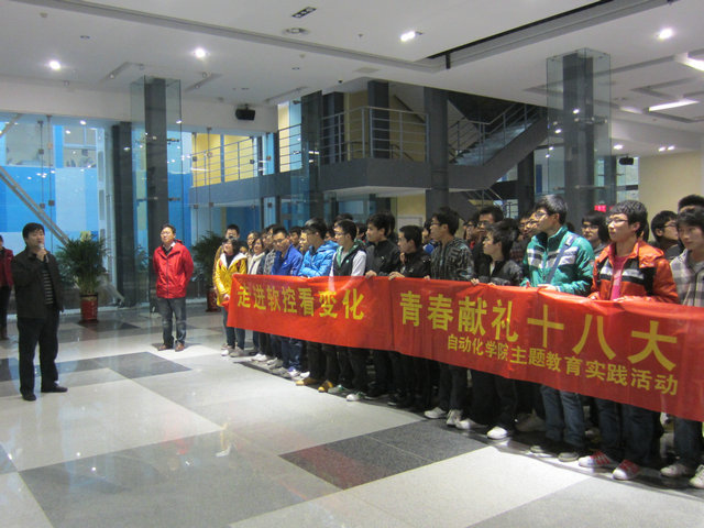 11月16日,swag直播 分团委组织开展了“走进软控看变化,青春献礼十八大”主题教育实践活动,引导学生感受祖国日新月异的科学发展成就,深入推进社会主义核心价值体系教育,坚定青年的理想信念,加强团员青年的思想引领,切实服务青年的成长成才,唱响时代主旋律,把学习贯彻党的十八大精神不断引向深入。