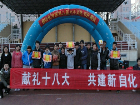 “永远跟党走,成才报祖国”第八届户外文化节于2012年11月13日在崂山校区操场隆重举行。出席本届文化节的嘉宾有分团委副书记兼学工办主任刘兆鹏、分团委老师张敏、第九届学生会主席王晓军。