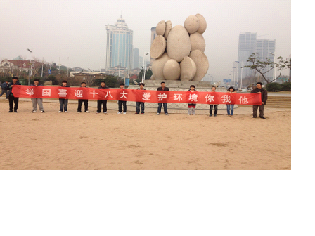 中法班开展了以“喜迎十八大”为主题的社会实践活动。大家以“举国喜迎十八大,爱护环境你我他”为口号,来到石老人海水浴场,进行捡垃圾活动。