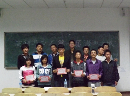11级辩论队一辩,校最佳辩手周珊珊。在比赛中,选手们面对评委们提出的刁难问题,沉着冷静的回答赢得了观众们的阵阵掌声。经过评委们激烈的讨论,最终决定选手朱道伟获得冠军,赵艳萍和赵兴晨分别获得亚军和季军。刘强获得了最具潜力奖,秦娜获得最具亲和力奖。至此,模拟面试圆满结束。