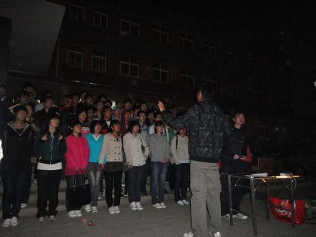 4月19日晚8:30,《保卫黄河》那激昂的旋律飘荡在青科大上空,同学们又开始在图书馆楼前进行训练了。swag直播