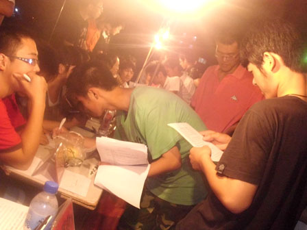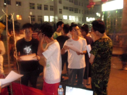 由于大一新生正在进行军训,所以此次纳新活动安排在晚上进行。但是当纳新开始后却发现前来参加社团的新生寥寥无几,后来才得知星期天晚上学校在东山操场放映《唐山大地震》。尽管如此,各社团负责人还是很早就来到了纳新地点为即将开始的纳新做准备。在一个小时以后,新生们陆续从东山操场回到宿舍,纳新活动也渐渐有了起色。起初很多新生对社团没有什么概念,所以作为学长、学姐的社团人们开始热心的给新生们介绍各个社团的情况和主要职责。经过学长们的一番解释,大一的学弟学妹开始对社团有所了解,并开始在自己感兴趣的社团负责人那里留下自己的联系方式。