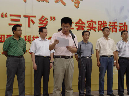 暑期三下乡社会实践出征仪式在崂山校区隆重举行,29支蓄势待发、即将开赴全国各地的实践队伍参与了此次出征仪式。在此次出征仪式上,赴潍坊科学发展观服务调研团指导老师刘名森的讲话给我留下了深刻的印象。