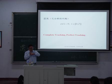 上午10点整,讲座正式开始。首先,童刚副院长对孙教授的职务和所获奖励作了简短的介绍;而后,讲座正式拉开帷幕,孙教授从“迭代学习控制原理”的起步和发展着手,层层展开、步步深入。同时,选取学习的数学描述、机件加工控制、飞机着陆控制等鲜活事例对“迭代学习控制原理与应用”进行了详尽的诠释,使同学们以一种更加贴近实际生活的方式逐步了解和学习了“迭代学习控制原理”。孙教授还就“重复策略学习”作了简单的介绍,并将其与“迭代学习控制”巧妙地联系在一起,引起了同学们极大的兴趣。随后,孙教授与同学们进行了现场互动交流,亲切的解答了同学们的问题。最后,讲座在同学们热烈的掌声中落下帷幕。