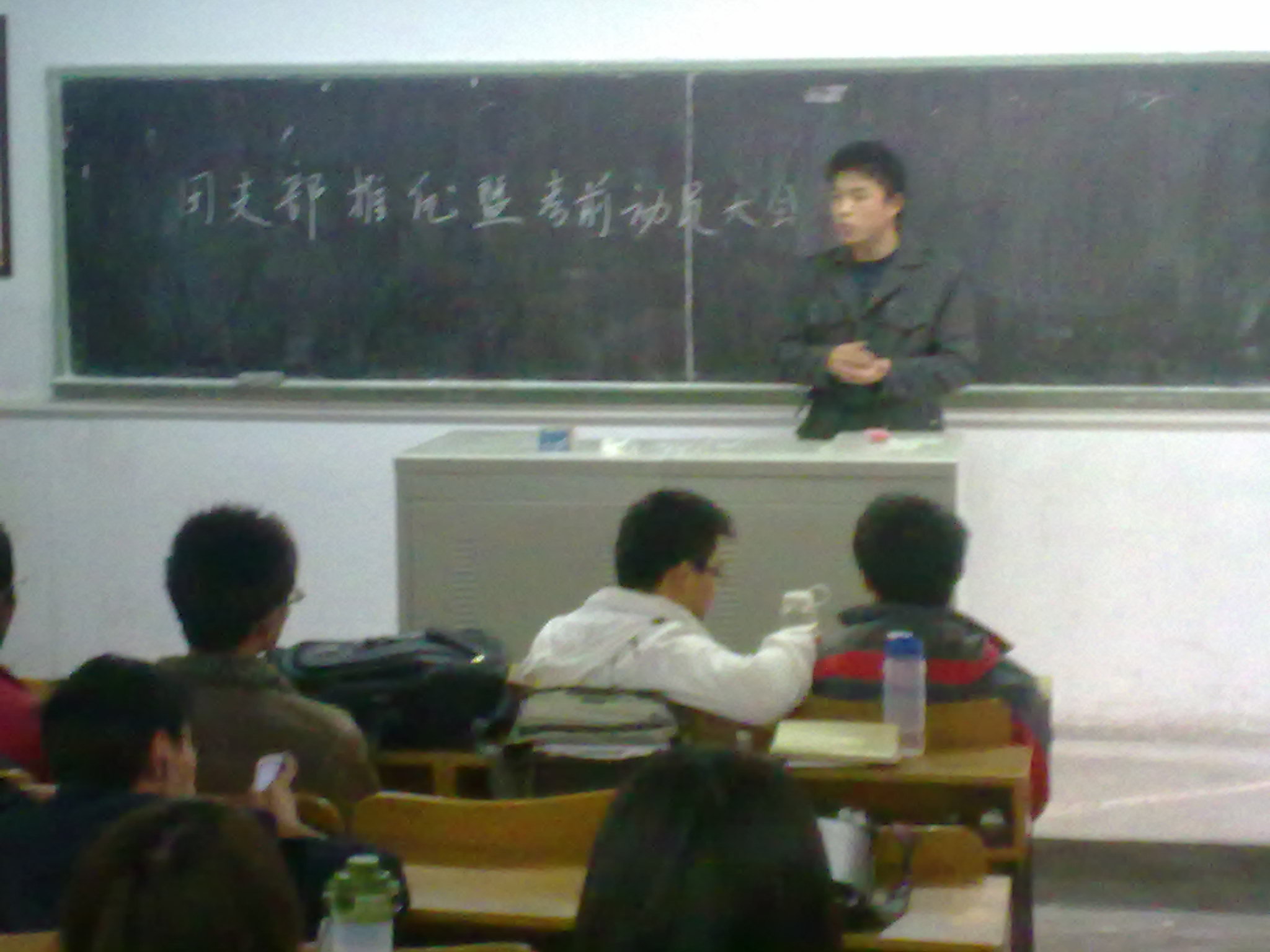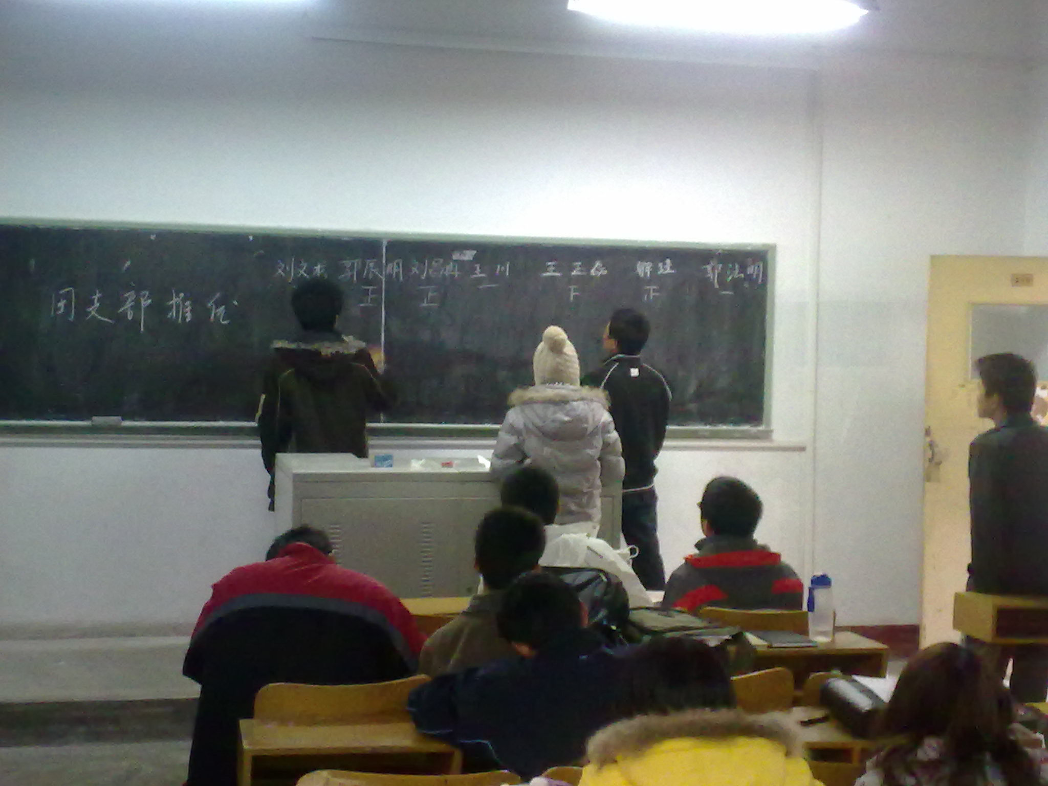 2009年11月26日下午3:30,电信082全体同学在二教219举行“团支部推优暨考前动员大会”主题班会。