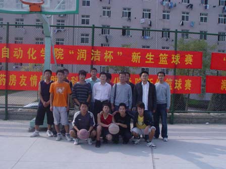 首场比赛是测控班对阵电气班。上半场的比赛哨音一吹响,双方立刻开始了紧张激烈的拼抢,一时间场上人影奔走穿梭,场下拉拉队热烈喝彩加油。很快,电气男儿就投中场上第一球,领先测控队。之后测控队又奋力追平比分,时间在一分一秒的飞速转过,比分也在快速变换着。当电气队以17分领先时,上半场比赛结束。半场休息后,运动员有精神抖擞的开始了又一轮的对抗。最终,在运动员的淋漓大汗中,电气队以50:17的绝对优势赢得了首场比赛,而测控队也不失风度的向对方表示了祝贺。