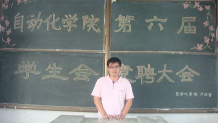 换届选举大会正式开始,主持人闫凤丹宣布竞选流程,参与此次竞选的学生会成员认真聆听着竞选规则,大家脸上洋溢着自信的笑容。按规则,竞选主席团的成员有三分钟的演讲时间,而竞选部长的干事有两分钟的发言时间。首先,竞选主席团的各部部长们主动上台演讲,他们锐意的思想、幽默的谈吐征服在场的同学,教室里时时响起热烈的掌声。随后,竞选部长的干事上台演讲,他们饱满的热情和总结的经验赢得了领导老师的点头赞许。最后,刘名森老师对此次竞选大会进行了总结,作为学生会的负责人,刘老师为这次学生会的换届选举做了大量筹备工作,他首先对大家参与学生会的热情表示赞许,然后勉励大家要将学习放在首位,在完成学习任务的基础上搞好工作,最后他预祝此次换届选举大会取得圆满成功。会议在大家如潮般的掌声中落下帷幕。