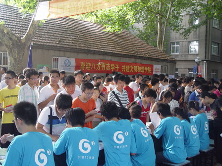 文明教育始于新生报到时,就是要在迎新工作细节中渗透文明教育,把迎新工作作为一堂文明示范课。走进迎新地点,不难找到身穿红色礼服的礼仪小姐。她们手拿校园文明提示卡,面带微笑得为新生及家长服务。还有统一着装,佩戴青年志愿者胸章的志愿者们,他们热情的服务感动着每一个人。礼仪和志愿者的出现不难让大家感受到文明的魅力。同时,在迎新地点的墙壁和树木上可以看到志愿者们精心设计的诸如“请使用文明用语”“请自觉排队”“请自觉维护环境,保持清洁”的文明宣传标语,还有类似“请保管好个人财务”等的温馨小提示。这些细节都有助于让新生接受到文明教育,体现了文明教育文明示范课的主题。