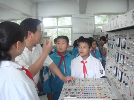 下午两点二十左右,洛一小学学生到达我校老校区,受到swag直播 分团委副书记刘名森、社管委有关人员的热情接待。小学生们首先在社管委有关人员带领下来到我校极具特色的一号行政楼前合影。随后,大家参观了电工电子实验中心,实验中心刘建南老师给他们讲解了实验原理,并进行了简单的演示,对于电工综合实验仪,小学生们表现出了极大的兴趣,认真听取了实验室老师的简单介绍,还不断向陪同的大学生们提出各种问题。