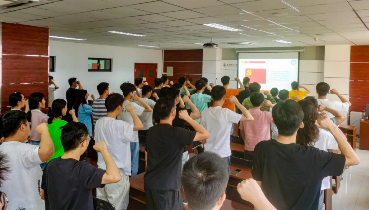 楼410,组织全体毕业生党员开展“不忘百年初心,继续砥砺前行”毕业生党员主题党日暨重温入党誓词活动。