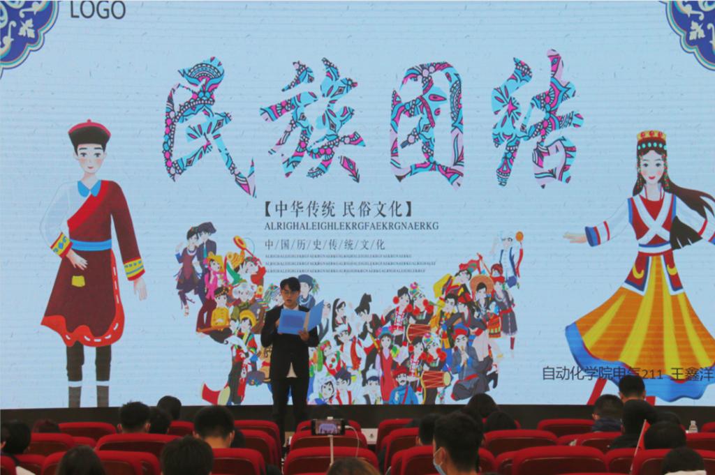 电气211班王鑫洋以“坚定不移的维护民族团结、反对民族分裂”为主题,讲述我国从鸦片战争时期到新中国成立,再到改革开放时期,我国一直坚定不移的追求民族团结统一。呼吁我们高举中华民族大团结旗帜,不断铸牢中华民族共同体意识,牢固树立各民族共同体理念,为我国实现现代化强国目标添砖加瓦。