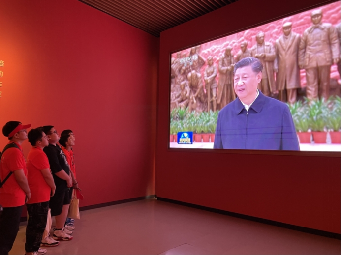 一座红色展馆,就是一间“行走的教室”、一本“永远读不完的书籍”。7月23日下午,实践队成员整装待发,来到延安革命纪念馆进行学习参观。纪念馆前的广场上,毛主席的铜像巍然耸立,他双手撑腰,目光坚毅,眺望远方。铜像后面坐落的即是延安革命纪念馆,在这里,成员们通过观看一幅幅珍贵照片、一件件革命文物,聆听一段段动情讲解、一篇篇感人故事,深入了解了革命先辈们在延安时期的艰苦奋斗的十三年。参观过程中,成员们深受教育与感动,在每一处都停留驻足,置身其中,跨越时空与历史对话。