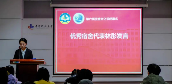 中法232班林彤作为优秀宿舍代表发言,从宿舍建设、专业学习、人际关系、组织纪律四个方面进行经验分享。她表示,宿舍生活是大学生活的重要部分,同学们应自觉遵守宿舍管理条例,舍友之间友善相处,共同营造和谐上进的宿舍环境。