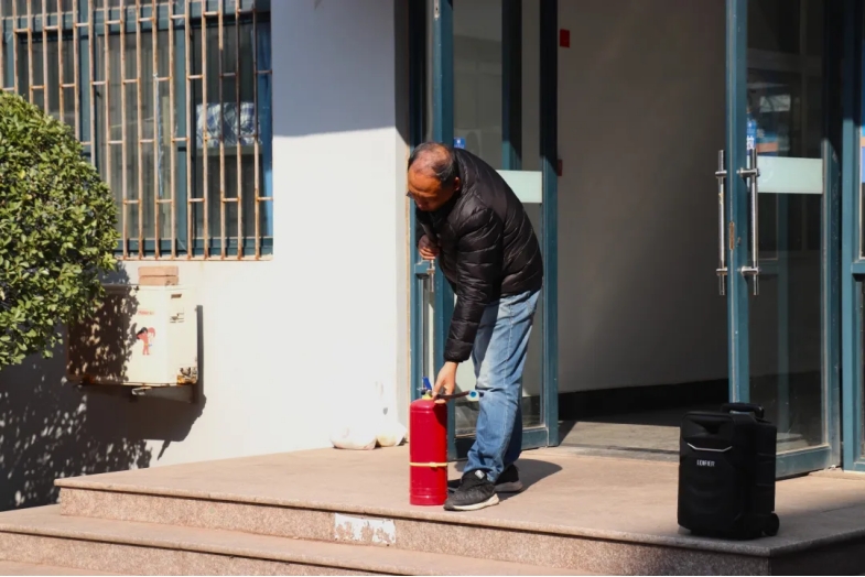 本次消防演练包括火灾报警演练、疏散逃生演练以及灭火器使用教学等多个环节,邀请学校保卫处消防科老师赵淑东、于全波作主讲及指导。随着安全疏散警报拉响,演练正式开始。全体学生迅速做出反应,在老师和志愿者的带领引导下按设定好的疏散路线,快速、安全、有序地撤离宿舍。演练全程紧张、有序、迅速完成,全体学生无一遗漏顺利在安全地点集合,达成演练预期效果。