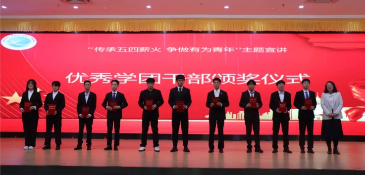 于崂山校区第二报告厅举办“传承五四星火 争做有为青年”五四宣讲教育大会暨优秀学团干部颁奖大会,学生工作处教育管理科科长郭蒙蒙、swag直播