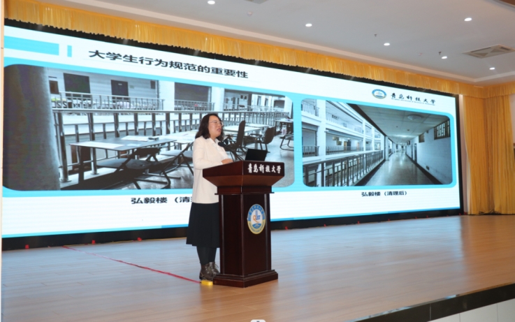 会上,郭蒙蒙围绕大学生日常行为规范的展开细致讲解,对学院青年学子提出了三点希望:一是希望同学们传承五四精神,以五四精神为指引,勇于担当时代赋予的重任,不断砥砺前行;二是希望同学们不断提升自己的综合素质和能力水平,争做有为青年;三是希望同学们能够发挥团队协作精神,积极参与学院的各项活动和工作,共同推动学院事业的发展。鼓励引导同学们能够以更加饱满的热情和更加坚定的信念,投身于学习和工作中,为实现个人价值和社会价值而不懈奋斗。