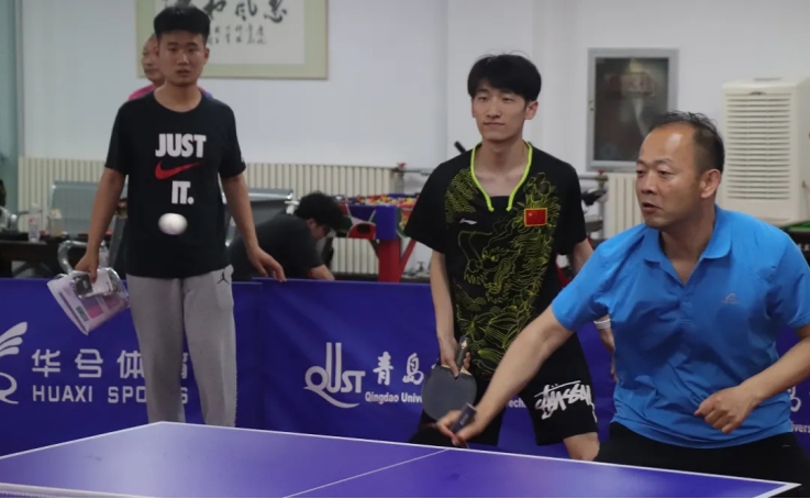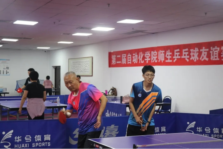 师生乒乓球友谊赛。赛前老师与学生依次抽签,每队由一位老师和一位学生组成,共组成14支师生队伍,分为四个小组进行循环赛,最终前四名出线角逐冠亚季军。