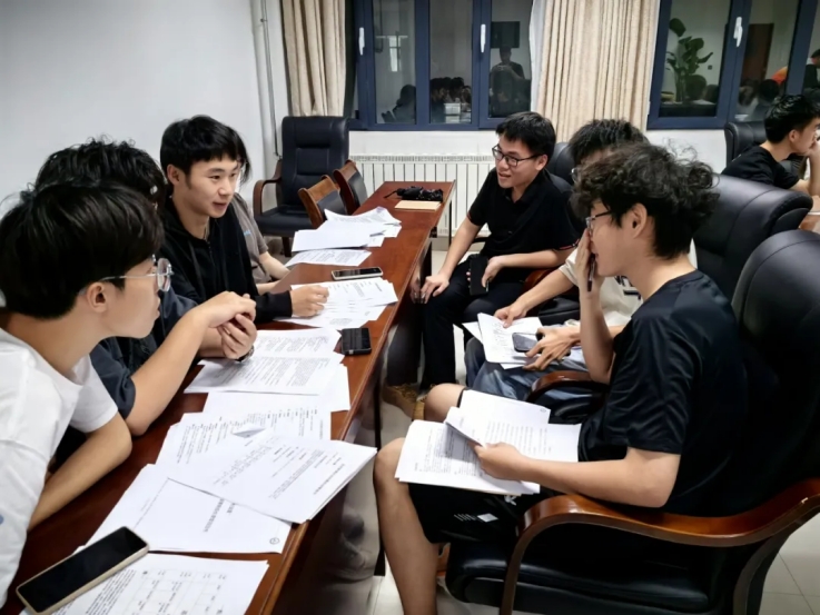 刘志飞老师带领各小组围绕计划书的核心内容展开热烈而深入的讨论,从理论框架到具体实施方案,深挖每一个细节,力求在即将到来的暑期社会实践中展现出最佳状态。