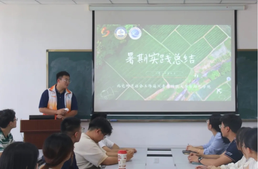 于学院楼406召开暑期北宅社会实践总结表彰大会。学院团委书记兼学工办主任雷静、北宅街道社工站站长张荣基、23级辅导员刘志飞及“筑梦”实践团队全体志愿者参加本次会议。