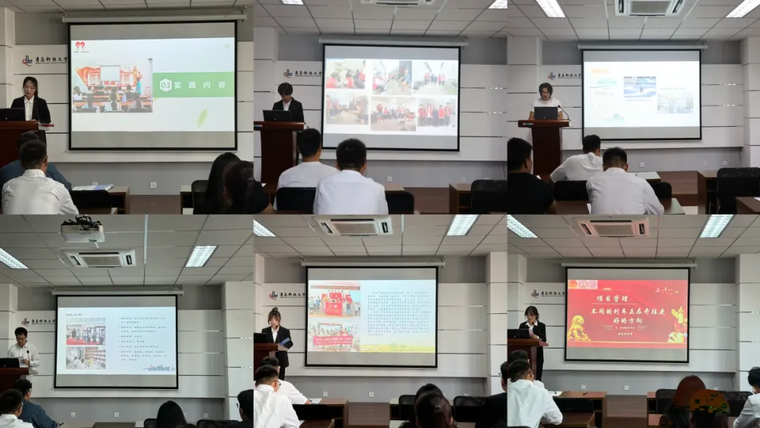 交流会环节,各支实践团队代表结合自身经历讲述了此次实践活动的总结与体悟,并从实践方向,实践体悟,实践成果几个方面阐释了实践之于大学生挺膺担当的价值。