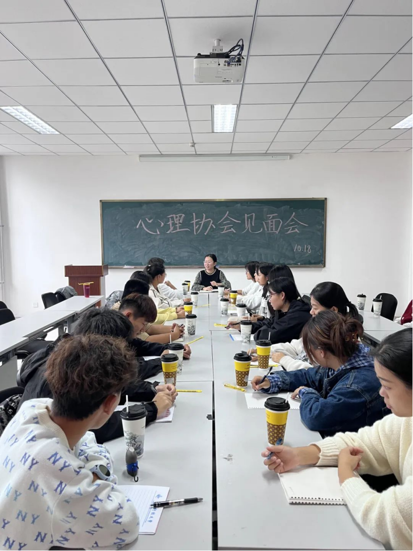 为了进一步完善大学生心理健康工作,切实为同学们提供更优质的心理健康服务,共同营造积极向上、团结友善、健康美好的学院氛围。10月18日下午,心理协会在学院楼406举行了心理协会新成员见面会。此次会议由心理协会指导老师雷静老师主持,心协成员以及24级心理委员共同参加。