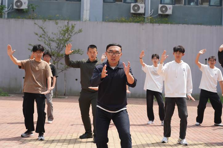 武术教学环节将活动推向高潮。李卓林通过分解演示武当三式、太极云手等经典动作,阐释“以柔克刚、内外兼修”的武术哲学。从马步桩功的沉稳到弓步冲拳的劲道,同学们在“起势-运劲-收势”的循环中领悟发力精髓。李卓林强调了武术对提升身体素质、锤炼精神品格及传承民族精神的意义。
