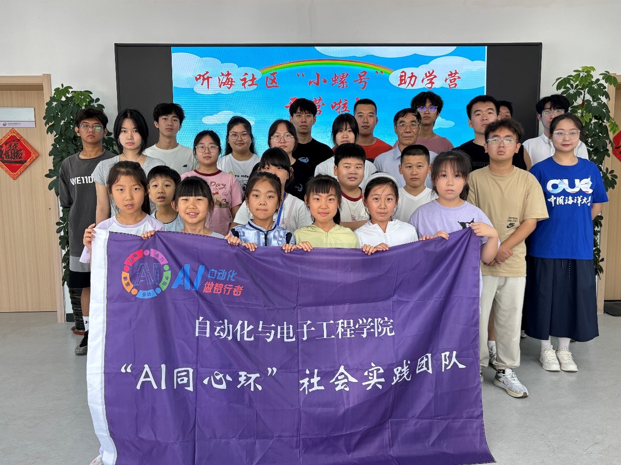 “AI同心环”实践团奔赴青岛市崂山区听海社区,开启了为期两周的暑期助学实践活动。实践团深知社区家庭对暑期“看护难”与“学业支持”的双重需求,将充分发挥自动化专业优势,怀抱服务基层、践行青年责任的初心,精心打造“上午学业辅导+下午科技探索”的特色课程体系,旨在为社区儿童构筑一个学业夯实与科技启蒙并重的精彩假期,让知识的滋养与探索的乐趣在这个夏天共同绽放。