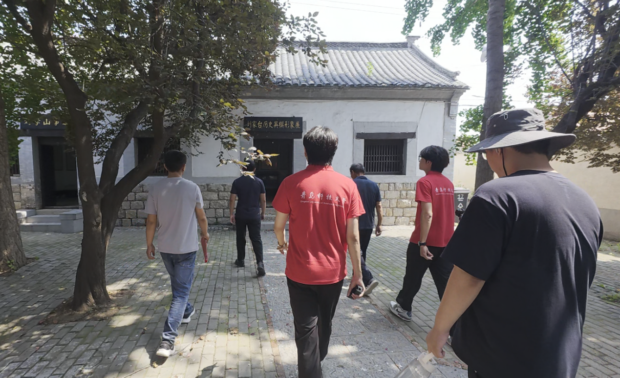随后,在刘书记的带领下,宣讲团成员来到村东头的抗战旧址。斑驳的石墙、门口悬挂的牌匾、老旧的石板路……每一处遗迹都承载着难忘的历史。