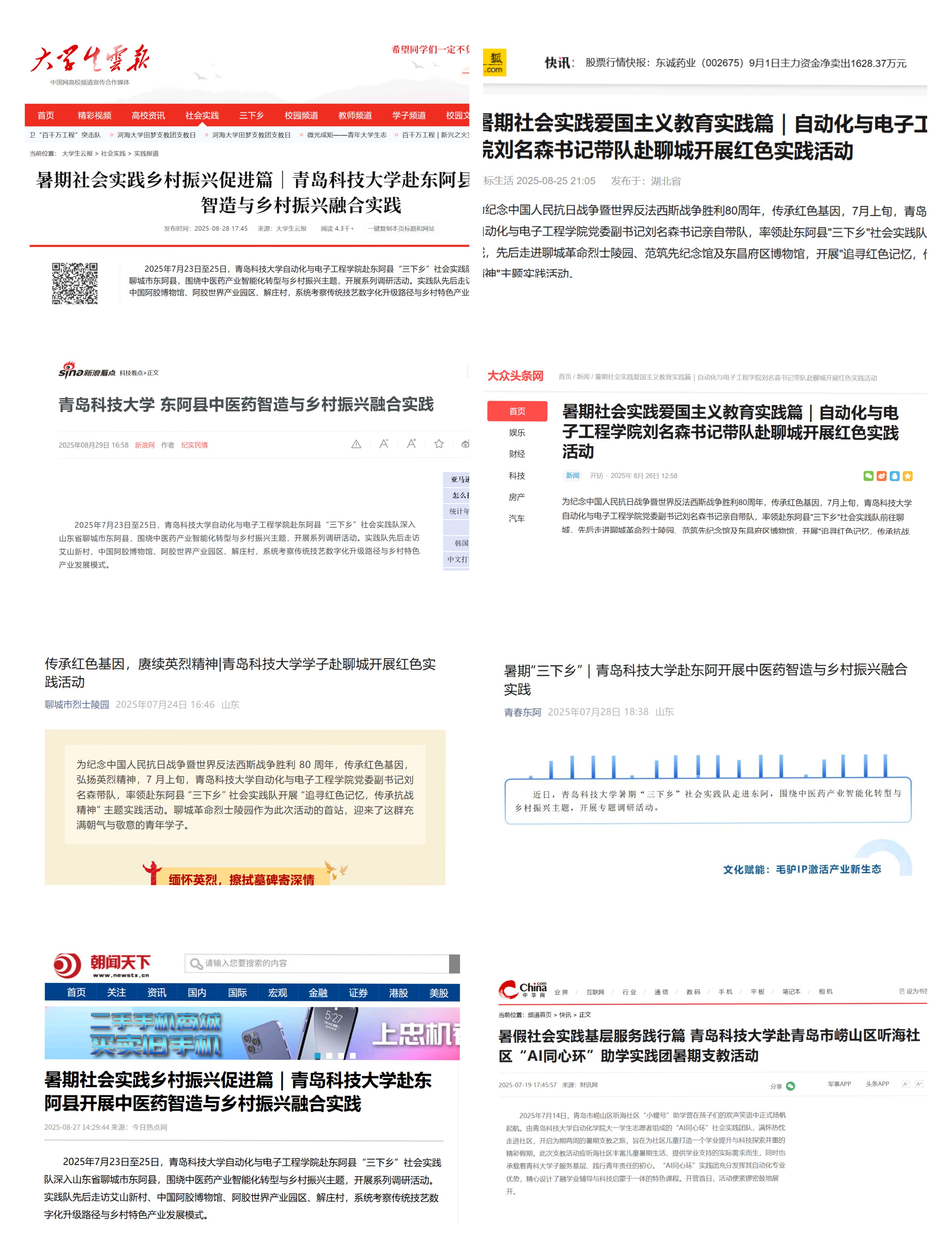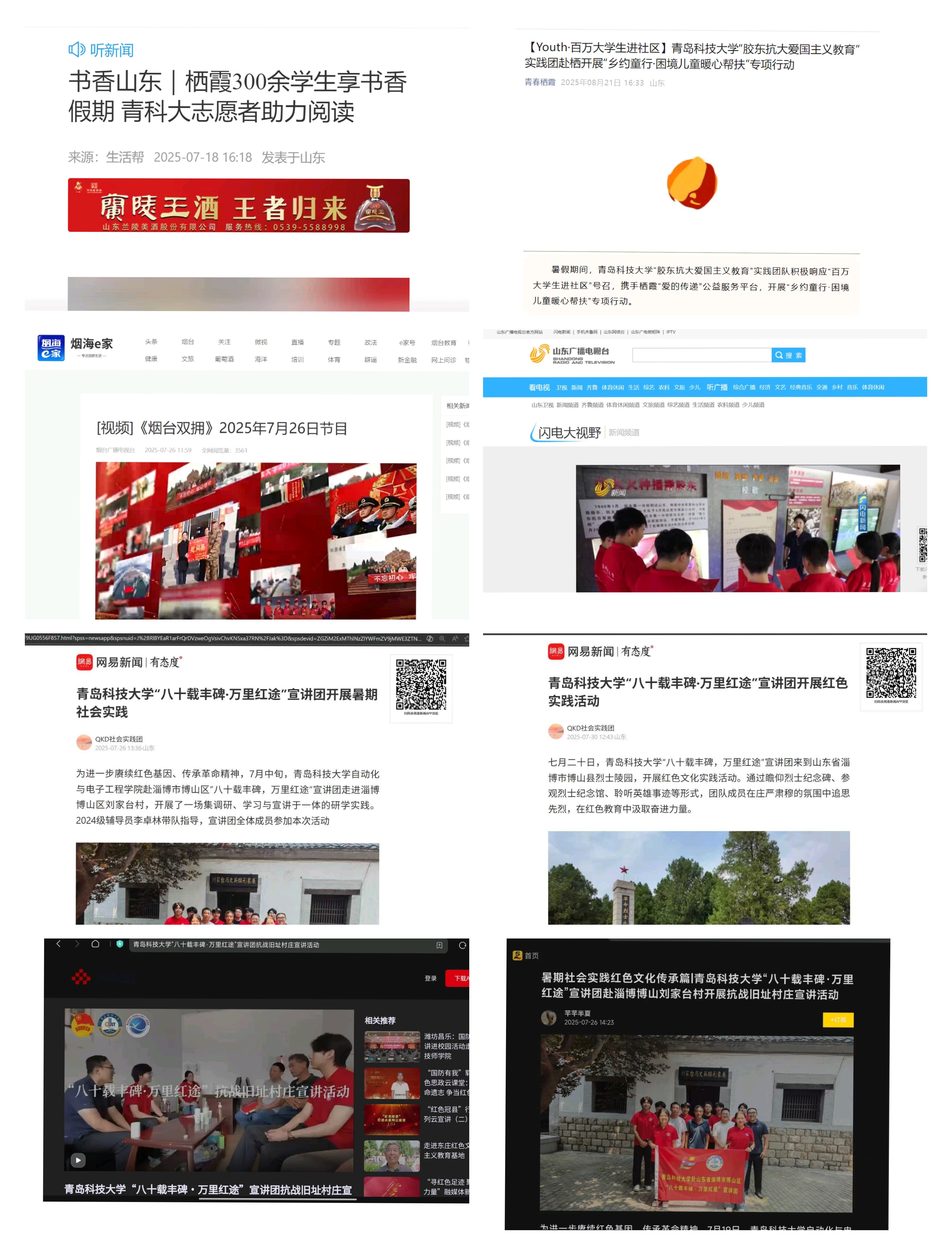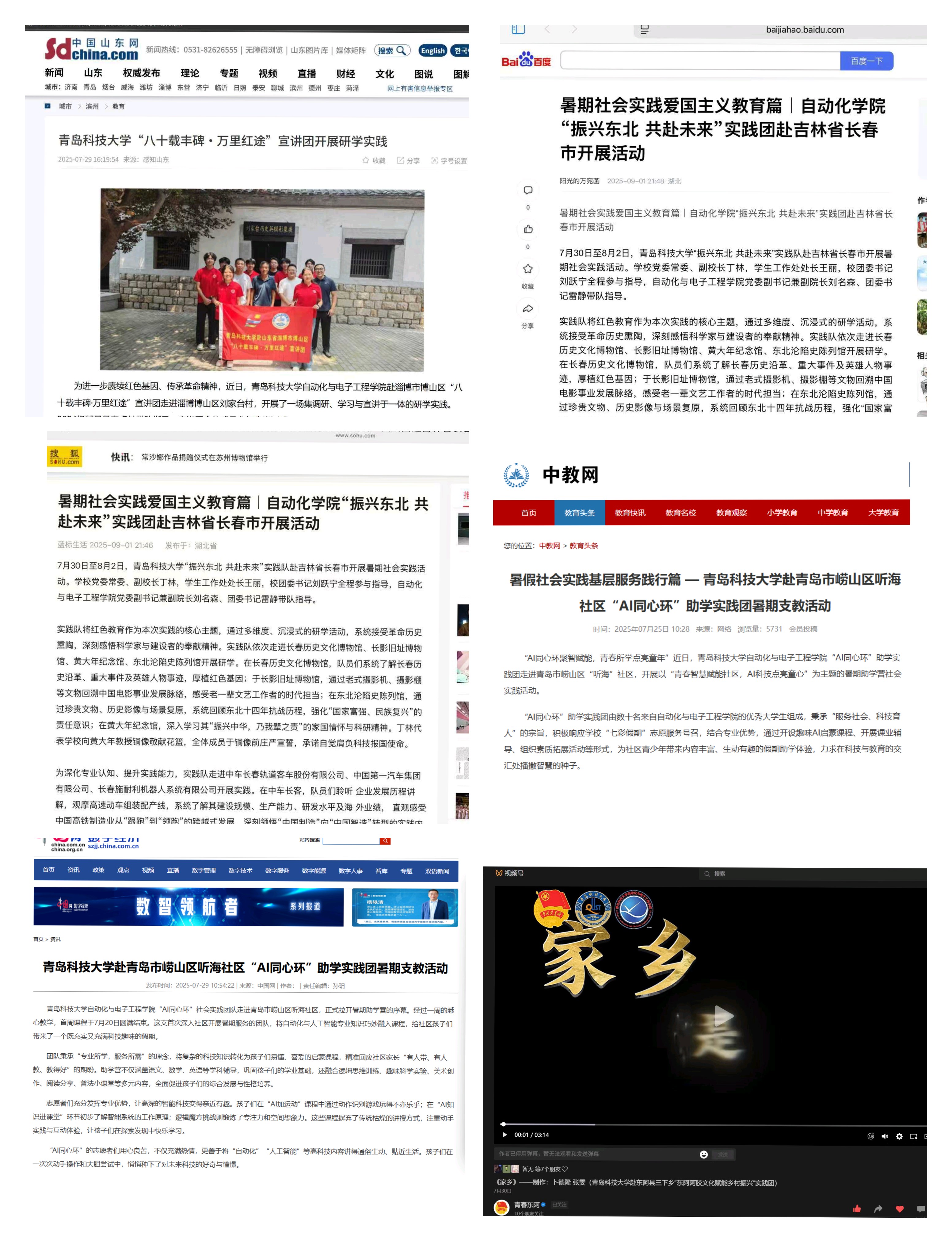 据悉,2025年暑假,学院精心组织了97支社会实践团队,深入青岛、烟台、威海、聊城、淄博、喀什、长春等全国20余个地区,累计开展各类实践活动300余次。活动紧密围绕纪念中国人民抗日战争暨世界反法西斯战争胜利80周年和“AI同心环”科技赋能乡村振兴两大核心主题展开。累计服务乡村儿童、企业员工、老年群体、社区居民近千人次,实践成果获得包括央视频、中国军号、山东新闻联播等国家级、省级官方媒体报道逾百次,总体阅读量突破12万次,有效扩大了社会影响,展现了青科大swag直播