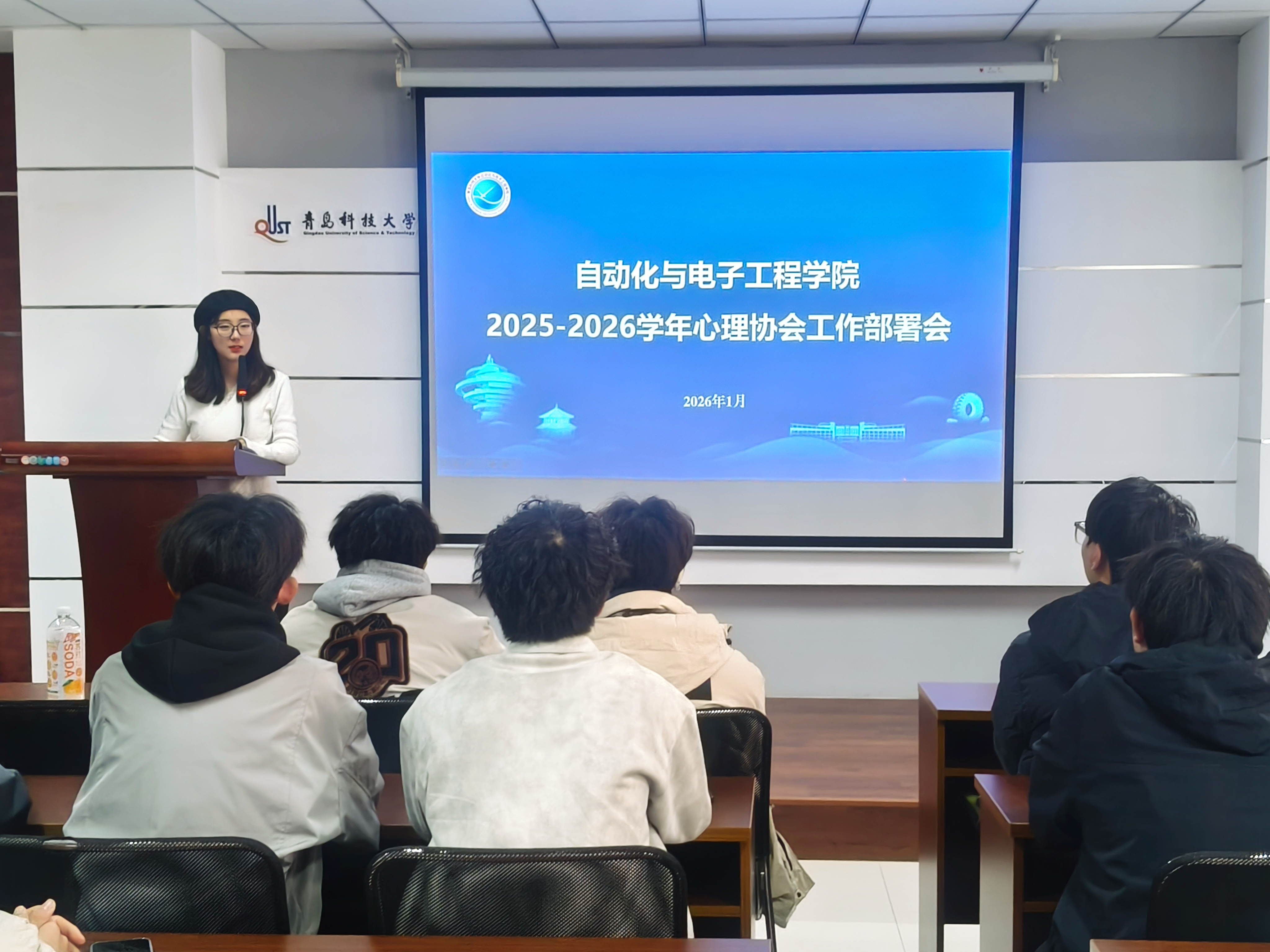 会上,丁雅琼首先对心理协会过去一年的工作进行全面总结。过去一年,协会紧紧围绕学院心理健康教育工作部署,紧扣关键节点、聚焦特色赋能、强化服务实效,各项工作取得扎实成效。在节点活动开展方面,精准把握3.25、5.25、9.25、10.25等心理健康主题教育节点,成功举办“拜师礼”等特色活动,以传统礼仪与心理引导相结合的形式,搭建师生互助桥梁,营造正向成长氛围;在队伍建设方面,有序开展心音使者培训会、班主任及导师培训会,系统提升队伍专业素养与服务能力,为心理健康工作开展筑牢人才根基;在活动创新与品牌打造方面,组织开展校级“多巴胺”心理运动会,以趣味运动为载体缓解学生心理压力,丰富校园心理文化生活;在实践服务与竞赛参与方面,主动开展进社区心理健康志愿服务,践行社会责任,同时积极参与朋辈技能辅导大赛并荣获二等奖,在十佳心理委员评选中斩获佳绩,以赛促练展现协会风采,全方位推动学院心理健康教育工作走深走实。随后,丁雅琼立足学院心理健康教育工作全局,结合年度工作重点、学期节点特征及寒假防护需求,对协会新一年工作作出三点部署安排。一是紧扣3.25、5.25等关键节点,提前制定全年活动计划、明确分工,推动主题教育活动迭代升级、落地见效,营造良好工作氛围;二是聚焦成员专业素养提升,通过开展培训、案例研讨、技能实操及各类竞赛,以赛促学夯实基础,增强心理服务针对性与实效性;三是立足寒假节点,精准对接学生心理需求,开展线上科普、情绪疏导等志愿服务,切实筑牢寒假期间学生心理健康“防护网”,确保学生度过平安、健康、愉快的假期。