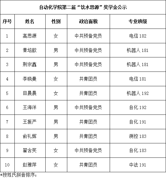 根据《关于评选swag直播 第二届“饮水思源”奖助学金的通知》,经个人申请、学院评审推荐、化自86基金监督委员会投票表决等环节,拟确定高思源等10名学生获得swag直播 第二届“饮水思源”奖学金、拟确定边洪涌等10名学生获得swag直播 第二届“饮水思源”助学金。现予以公示,公示期为11月26日至11月28日,如有异议者,请在公示期内实名向学院反映。