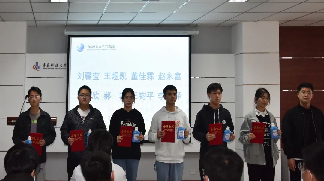 会上,张郁浩老师为优秀志愿者和优秀部门负责人颁奖。