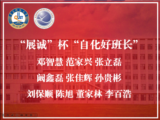 于2022年12月12日线上召开“AI自化”大学生优秀成果表彰大会。此次大会共表彰了2022年度“展诚”杯“十大优秀学生”、“自化好班长”、“十佳团支书”等30名先进个人,全体辅导员及各学生组织骨干成员参加。