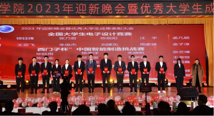 会上,王邑、马寒、李世密、王虹分别为荣获全国大学生电子设计竞赛、“西门子”杯中国智能制造挑战赛、全国大学生智能汽车竞赛以及“展诚”杯“自化好班长”、“十佳团支书”和“十大优秀学生”荣誉称号的同学颁奖。