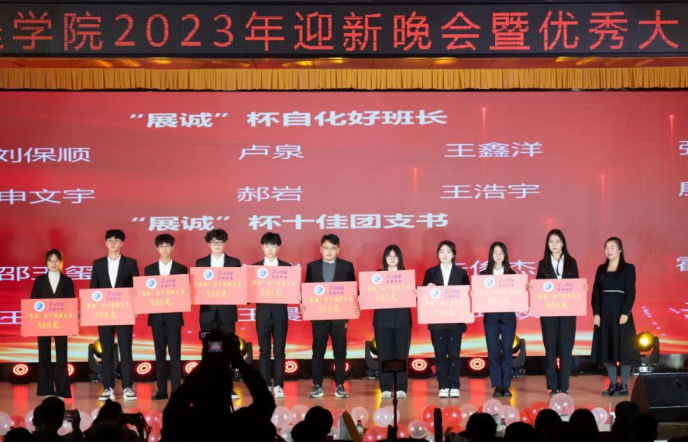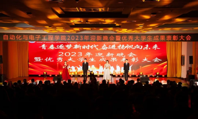 于崂山校区第二报告厅隆重举办2023年“青春逐梦新时代,奋进扬帆向未来”迎新晚会暨优秀大学生成果表彰大会。本次出席大会的嘉宾有校团委副书记王邑,青岛展诚科技有限公司联合创始人、工程部经理、swag直播
