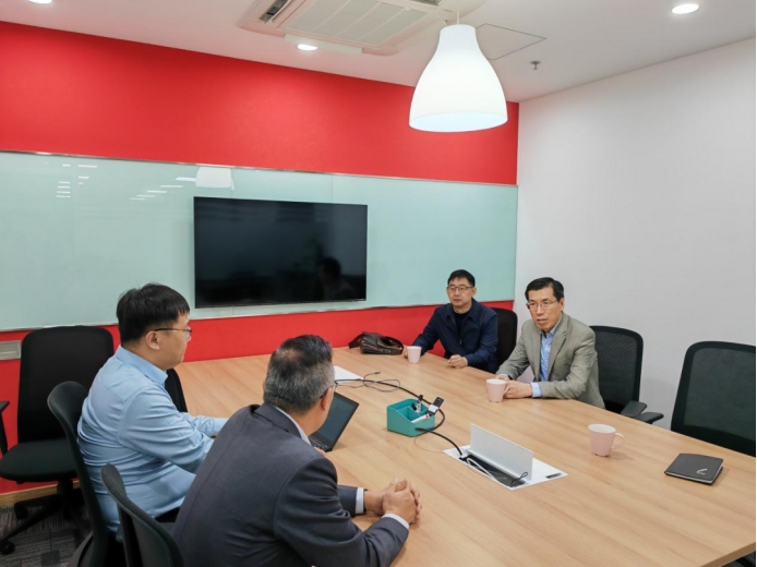 座谈环节,学院党委书记吕德谦、副院长陈为、测控教研室单宝明教授与公司技术总监及车间主任围绕产品智能化和智能化生产、毕业生情况、企业用人等情况进行深入交流。
