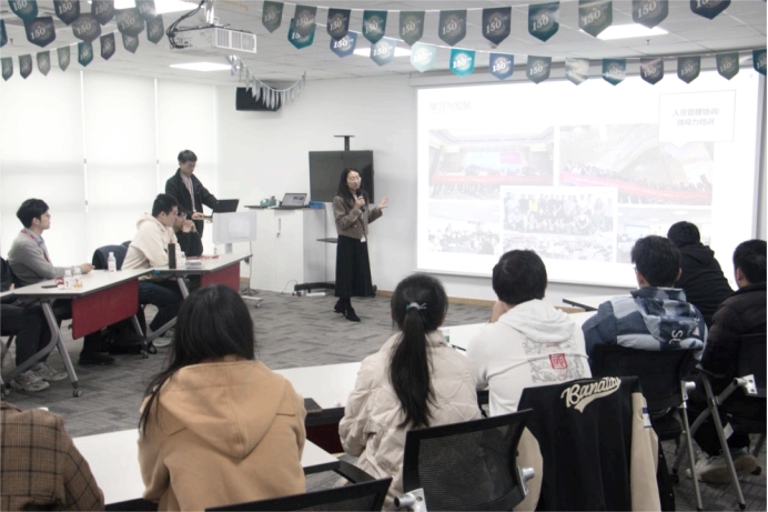 下午,师生一行人分为两组,分别进行智能制造和智能产品的车间参观,工艺经理和研发经理详细介绍了产品结构、生产流程、生产工艺等。参观结束后,采购副总裁和人事招聘经理结合个人发展,就学生实习、就业岗位、工作内容、工作时长、公司福利等方面进行讲解。