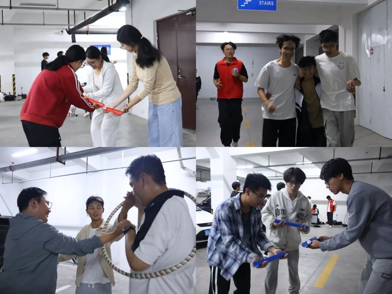 在学院楼地下车库成功举办“自联宿舍,乐趣纳心”宿舍趣味运动赛。各宿舍学生代表踊跃参与,在欢声笑语中展现出蓬勃的朝气与卓越的团队精神。