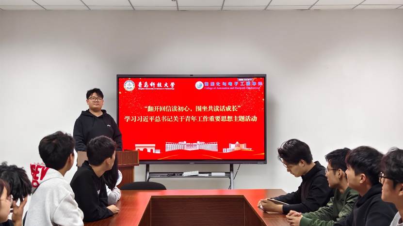 活动伊始,代表带领大家重温习近平总书记给青年群体的系列回信原文,逐字逐句解读其中蕴含的殷切期许与时代要求。他结合自动化专业特色,阐释总书记“青年人有理想、敢担当、能吃苦、肯奋斗,中国青年才会有力量”的深刻内涵,提及青年学子当以回信精神为指引,将专业所学与国家科技发展需求相连,夯实本领,把青春志向融入强国建设、民族复兴的壮阔征程。代表分享道,自动化领域的每一次技术突破都关系重大,作为新时代自动化青年,既要怀揣科技自立自强的初心,在学业中深耕细研,也要秉持实干担当的信念,在实践中锤炼硬功,以专业能力回应时代召唤。